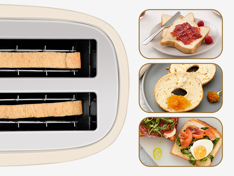 The generously sized 1.6-inch slot can fit a diverse range of bread types, including bagels, white bread, sandwiches, waffles, muffins, and various others.
